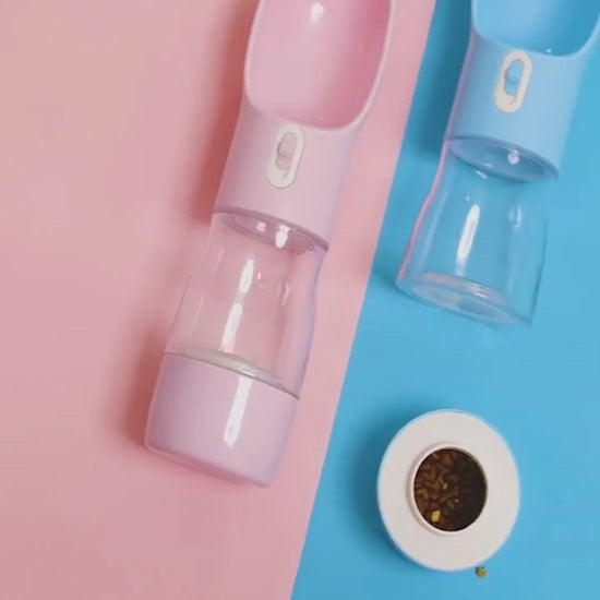 Portable bottle for your pet, put water and food in it and take it with you to always keep your pet hydrated and fed